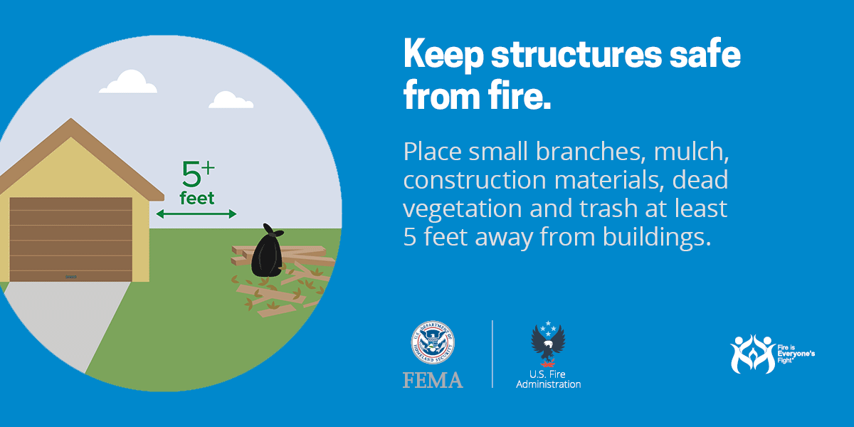 - Create a safety zone of up to 100 feet around your home. Remove pine needles and dry leaves from around your home. Keep woodpiles at least 30 feet from your home.